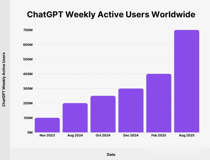 根据最近的报告,ChatGPT全球每周活跃用户已达7亿 。