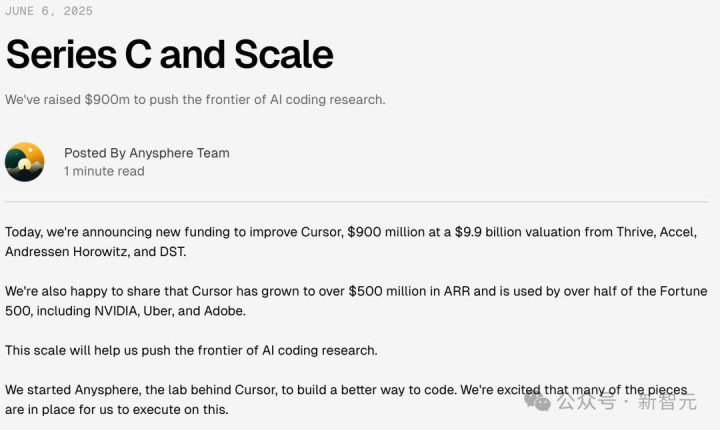 到2025年6月,Cursor的ARR已经超过5亿美元!