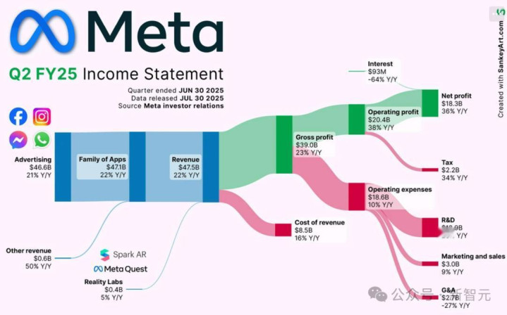 2024年,Meta的广告收入增长至1606.3亿美元,同比增长22%,这主要得益于广告展示次数(增长11%)和平均广告价格(增长10%)的双重提升。