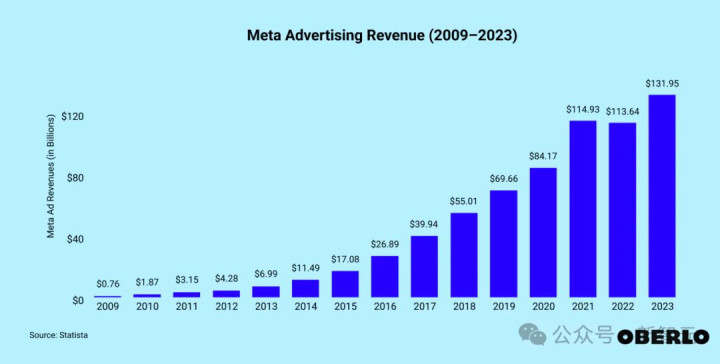 在2023 年,Meta广告收入达到了1319.5亿美元,同比增长16.1% 。